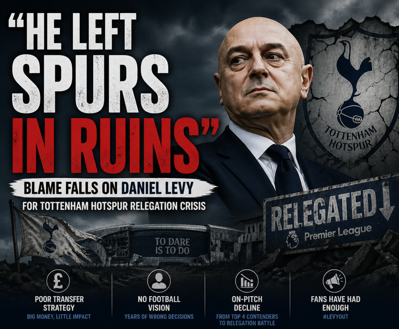 It’s too simple—and honestly a bit misleading—to pin Tottenham’s potential relegation entirely on the current squad or coaching staff. If you take a step back, a lot of this has been years in the making, and much of it traces back to decisions made under Daniel Levy.