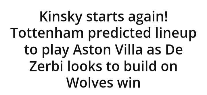 Kinsky starts again! Tottenham predicted lineup to play Aston Villa as De Zerbi looks to build on Wolves win