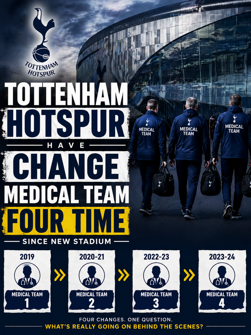 Reports says Tottenham Hotspur have made medical changes four -timed since new stadium era