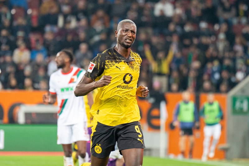 Goal Serhou Guirassy #9 (Borussia Dortmund), FC Augsburg vs. Borussia Dortmund, Soccer, 1. Bundesliga, Germany, Round 9, 31.10.2025.